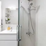 تشتمل وسائل الراحة داخل الغرفة على ضاغط السراويل والمكواة ولوح الكيّ ولوازم كيّ الملابس، فضلاً عن تلفزيون بشاشة مسطحة مع قنوات فضائية وجهاز التلفزيون لإقامة أكثر متعة. تتميّز الشقة أيضًا بأرضية مبلّطة ومجهزة بالصالون ومكتب الكتابة. تشتمل هذه الشقة على حوض الاستحمام والدوش للاسترخاء. بالإضافة إلى ذلك، ستجد المجفف وملاءات الحمام والمناشف.